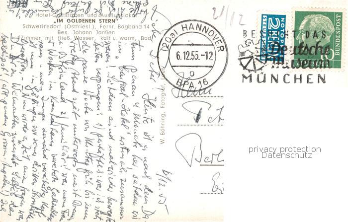 73850407 alte Postkarte Schwerinsdorf Hotel Gaststaette Ausflugslokal Im Goldenen Stern postalisch gelaufen Erhaltung siehe scans [FriedD77] KatCode: 11110003457019
