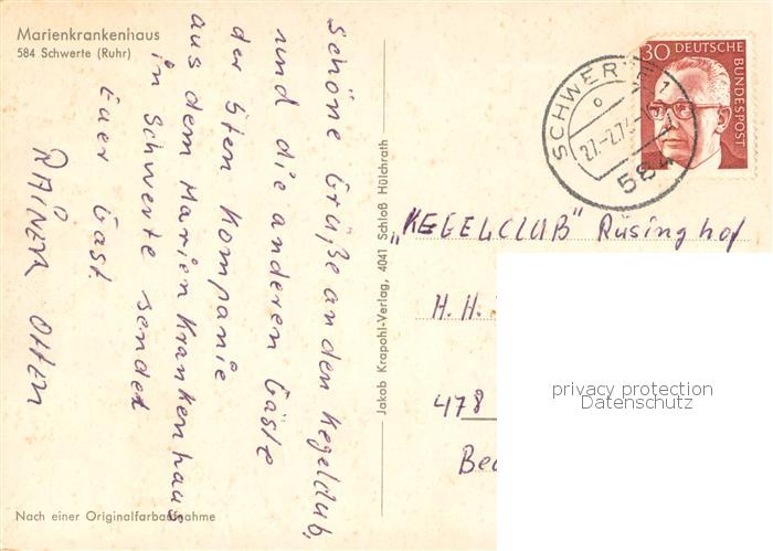73759096 alte Postkarte Schwerte Marienkrankenhaus postalisch gelaufen Erhaltung siehe scans [WerneD78] KatCode: 11110005978028