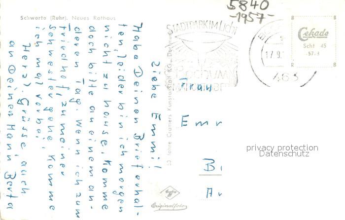 73704312 alte Postkarte Schwerte Rathaus postalisch gelaufen Erhaltung siehe scans [LiesaD40] KatCode: 11110005978028