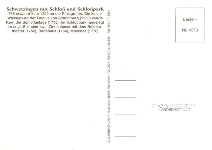 73836291 Schwetzingen Fliegeraufnahme mit Schloss und Schlosspark postalisch nicht gelaufen Erhaltung siehe scans [WerneD78] KatCode: 11110008226084