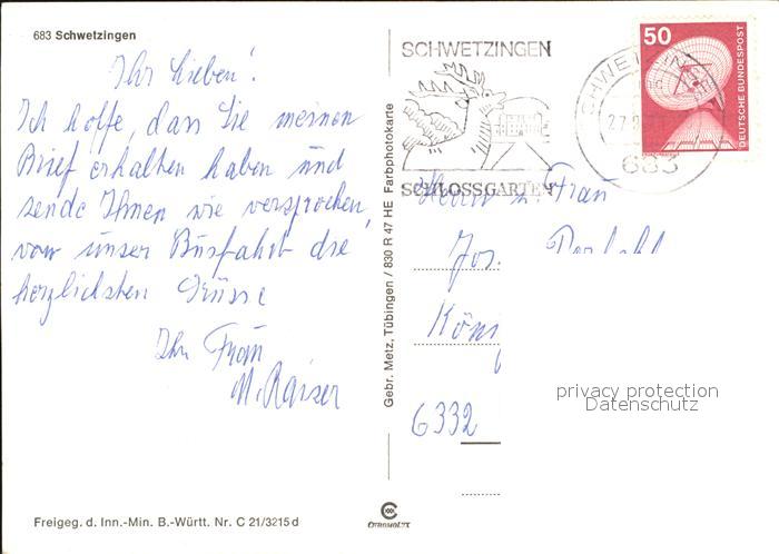 72504274 alte Postkarte Schwetzingen Fliegeraufnahme Schloss postalisch gelaufen Erhaltung siehe scans KatCode: 11110008226084