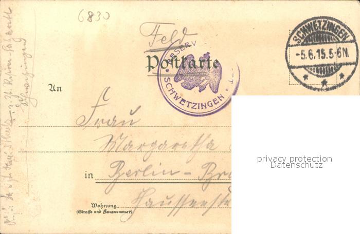31720859 alte Postkarte Schwetzingen Park postalisch gelaufen Feldpost Erhaltung siehe scans KatCode: 11110008226084