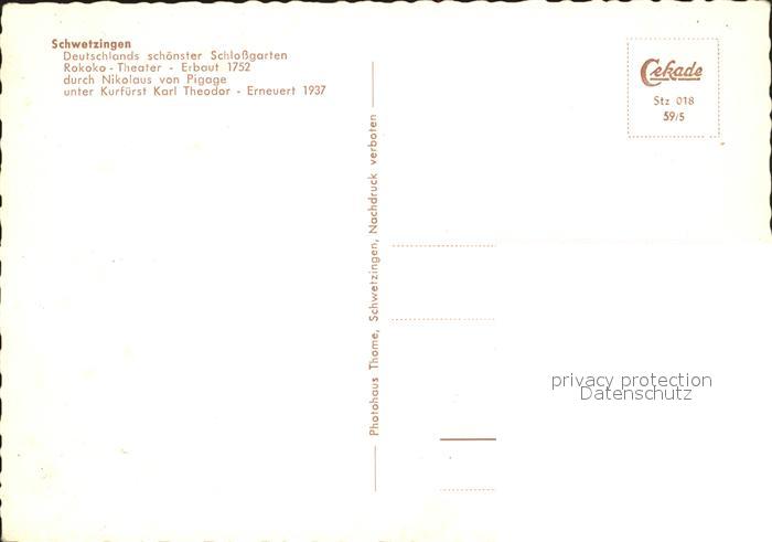 72205645 Schwetzingen Rokoko Theater postalisch nicht gelaufen Erhaltung siehe scans KatCode: 11110008226084
