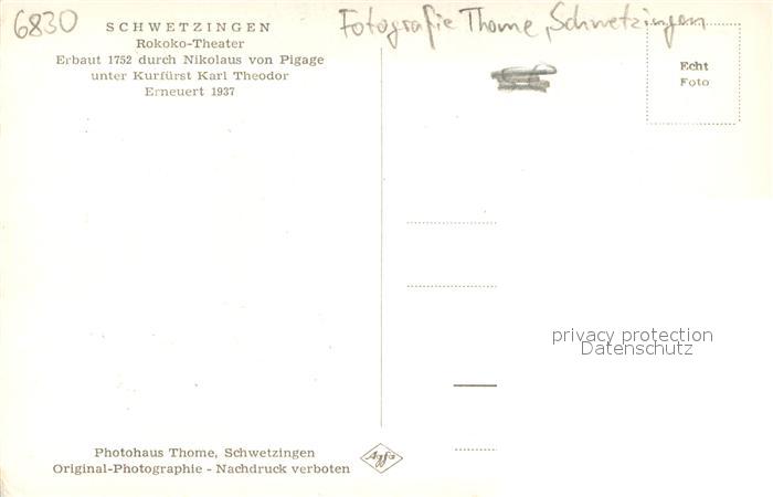73695201 Schwetzingen Rokoko Theater 18. Jhdt. postalisch nicht gelaufen Erhaltung siehe scans [FriedD77] KatCode: 11110008226084