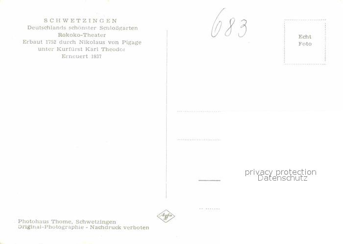 72694704 Schwetzingen Schl0ssgarten Rokoko-Theater postalisch nicht gelaufen Erhaltung siehe scans [LiesaD40] KatCode: 11110008226084