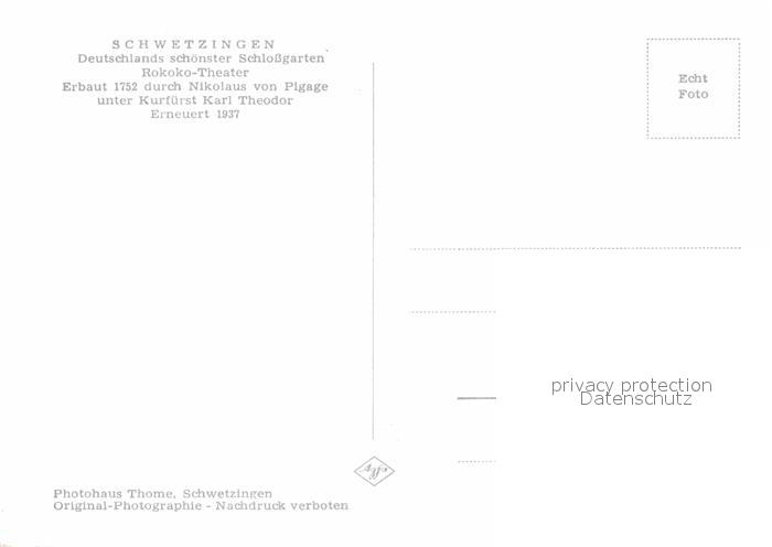 72831487 Schwetzingen Schlo?garen Rokoko Theater innen postalisch nicht gelaufen Erhaltung siehe scans [LiesaD40] KatCode: 11110008226084