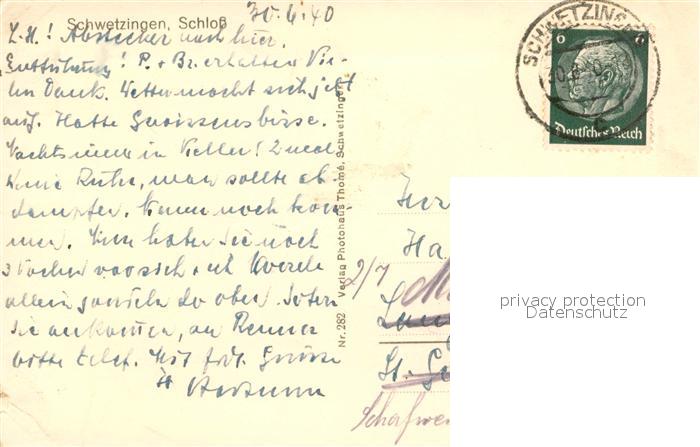73623129 alte Postkarte Schwetzingen Schloss postalisch gelaufen Erhaltung siehe scans [WerneD78] KatCode: 11110008226084