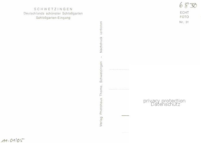 72900962 Schwetzingen Schlossgarten Eingang postalisch nicht gelaufen Erhaltung siehe scans [WerneD78] KatCode: 11110008226084