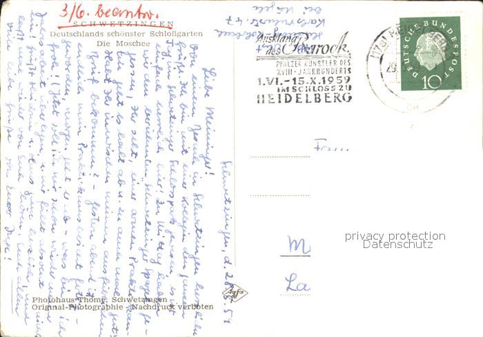 72394938 alte Postkarte Schwetzingen Schlossgarten Moschee postalisch gelaufen Erhaltung siehe scans KatCode: 11110008226084