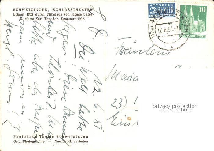 72250808 alte Postkarte Schwetzingen Schlosstheater 18. Jhdt. Nikolaus von Pigage Kurfuerst Karl Theodor postalisch gelaufen Erhaltung siehe scans KatCode: 11110008226084