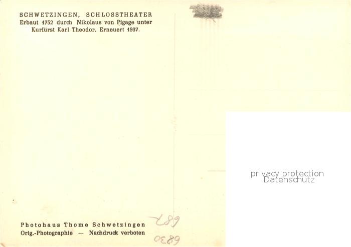 73280422 Schwetzingen Schlosstheater postalisch nicht gelaufen Erhaltung siehe scans [LiesaD40] KatCode: 11110008226084