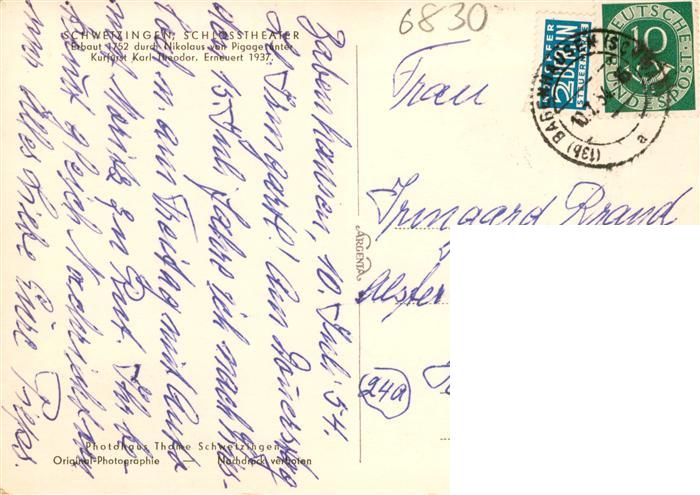 73914346 alte Postkarte Schwetzingen Schlosstheater postalisch gelaufen Erhaltung siehe scans [FriedD77] KatCode: 11110008226084