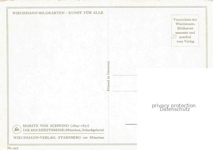 74150526 SCHWIND Moritz von Kuenstlerkarte Nr. 227 Die Hochzeitsreise postalisch nicht gelaufen Erhaltung siehe scans [IrynaD87] KatCode: 22240000003200