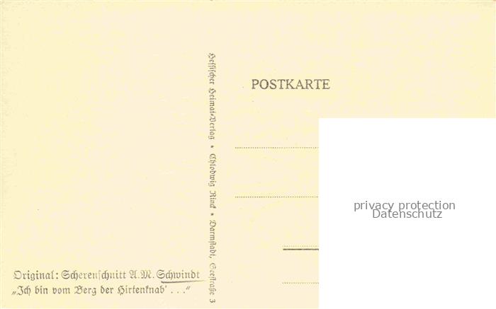 74084879 SCHWINDT A. M. Kuenstlerkarte Schattenbild Ich bin von Berg postalisch nicht gelaufen Erhaltung siehe scans [IrynaD87] KatCode: 22240000003200