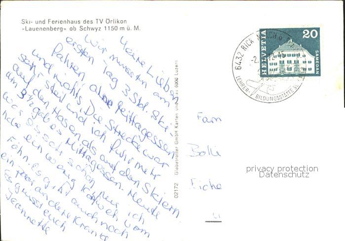 11643193 alte Postkarte Schwyz Ferienhaus des TV oerlikon Lauenenberg postalisch gelaufen Erhaltung siehe scans KatCode: 11470170500524