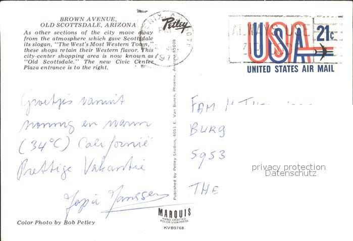 71972720 old postcard Scottsdale Brown Avenue postalisch gelaufen Erhaltung siehe scans KatCode: 14140030000000