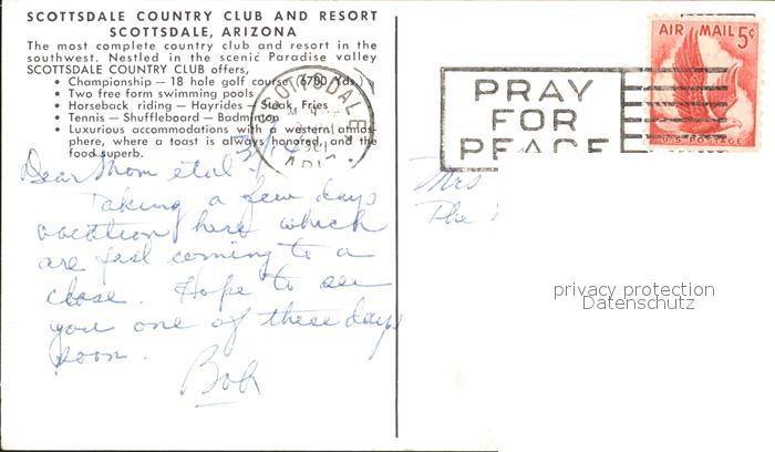 71859350 old postcard Scottsdale Country Club Golf Zeichnung postalisch gelaufen KatCode: 14140030000000