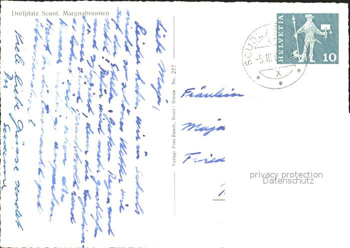 11651462 alte Postkarte Scuol Dorfpartie mit Margnabrunnen postalisch gelaufen Erhaltung siehe scans KatCode: 11470100325156