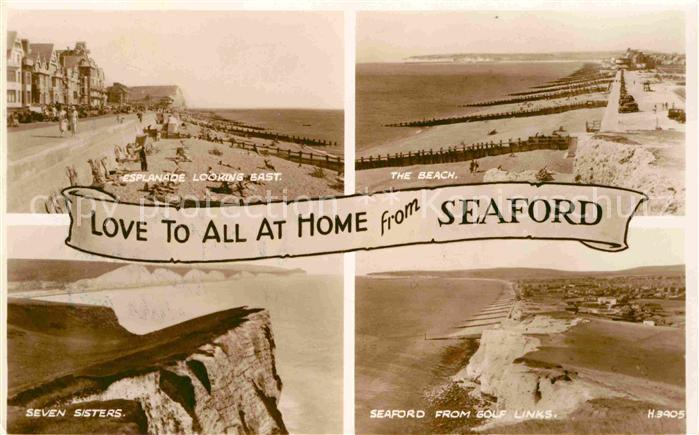 old postcard Seaford Lewes Esplanade Beach Seven Sisters Coast postalisch gelaufen Erhaltung siehe scans [FriedD77]