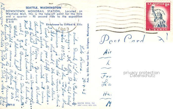 73333571 old postcard Seattle Downtown Monorail Station Westlake Mall postalisch gelaufen Erhaltung siehe scans [FriedD77] KatCode: 14140500000000