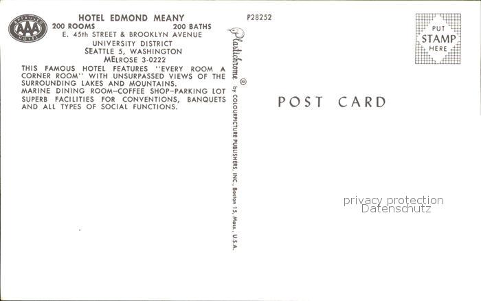11688531 Seattle Hotel Edmond Meany postalisch nicht gelaufen Erhaltung siehe scans KatCode: 14140500000000