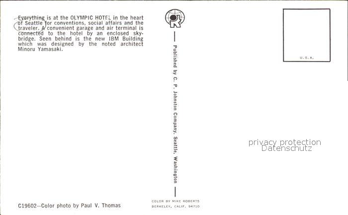 72458254 Seattle Olympic Hotel postalisch nicht gelaufen Erhaltung siehe scans KatCode: 14140500000000