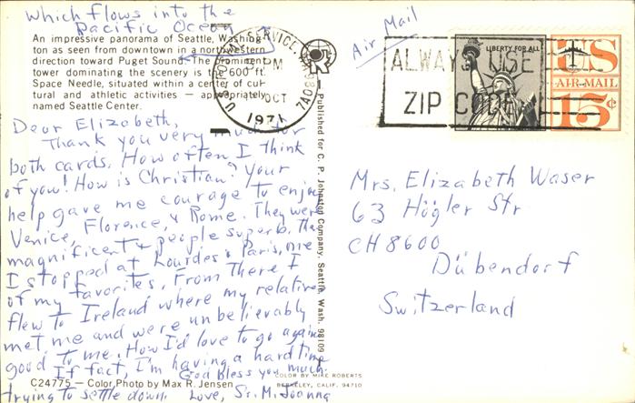 11491306 old postcard Seattle View towards Puget Sound with Space Needle Space Center postalisch gelaufen Erhaltung siehe scans KatCode: 14140500000000