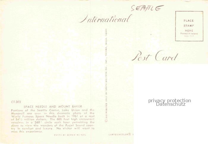 74092091 Seattle Washington USA Space Needle Mount Baker postalisch nicht gelaufen Erhaltung siehe scans [IrynaD87] KatCode: 14140500000000