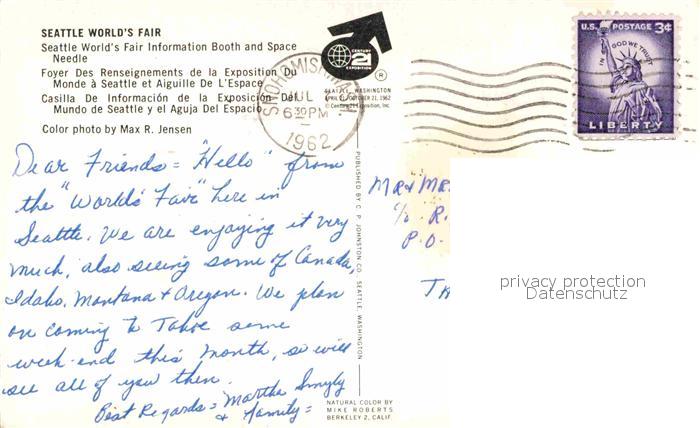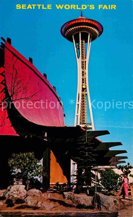 72614774 old postcard Seattle Worlds Fair Information Booth and Space Needle postalisch gelaufen Erhaltung siehe scans [WerneD78] KatCode: 14140500000000