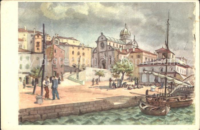 Sebenico Hafenpartie Kuenstlerkarte postalisch nicht gelaufen Erhaltung siehe scans