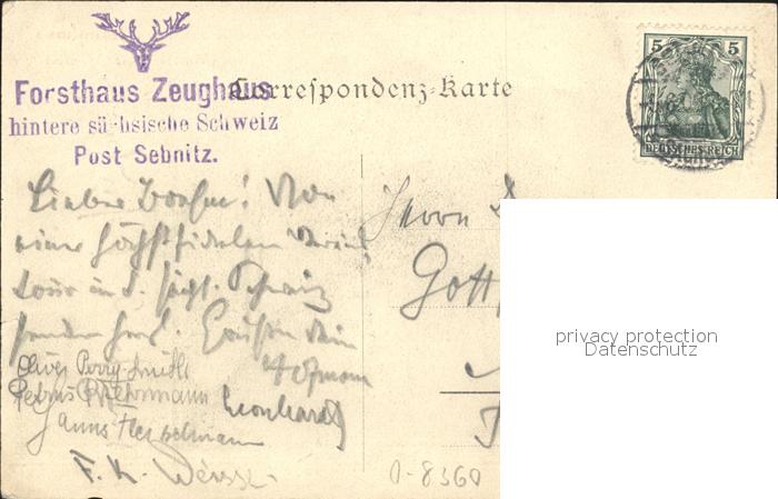 42249541 alte Postkarte Sebnitz Forsthaus Zeughaus postalisch gelaufen Erhaltung siehe scans KatCode: 11110014287370