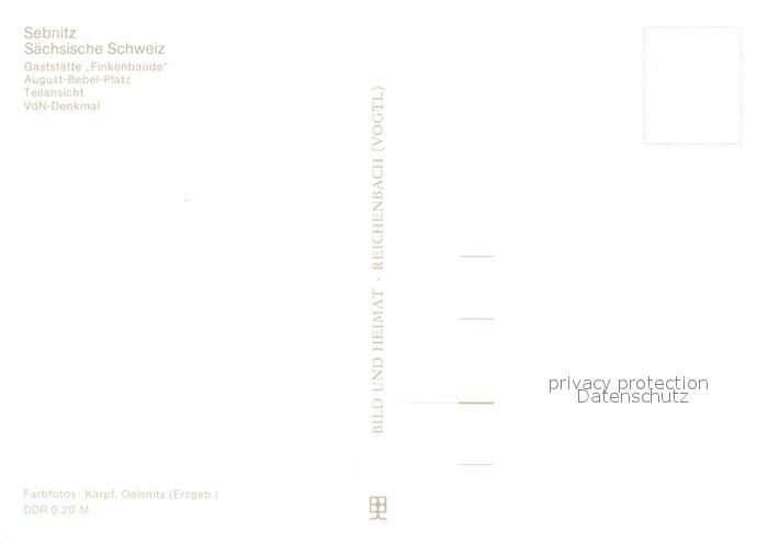 73652622 Sebnitz Gaststaette Finkenbaude August Bebel Platz Teilansicht VdN Denkmal postalisch nicht gelaufen Erhaltung siehe scans [FriedD77] KatCode: 11110014287370