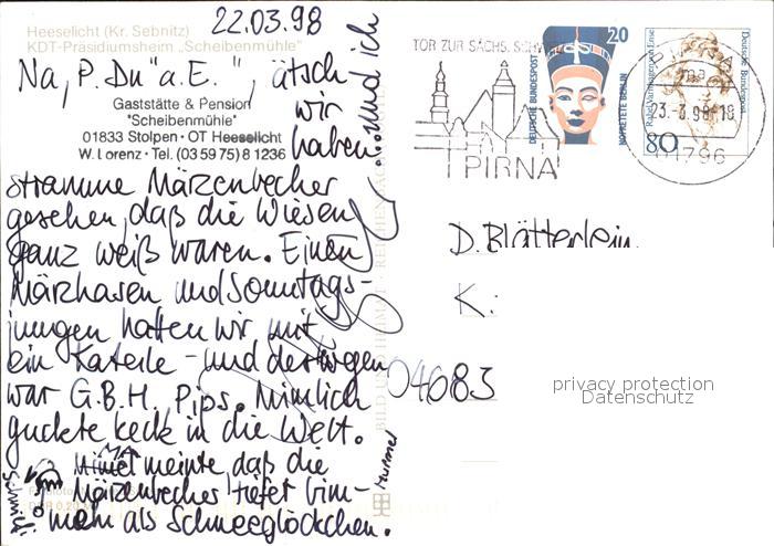 72379109 alte Postkarte Sebnitz Heeselicht KDT Praesidiumsheim Scheibenmuehle postalisch gelaufen Erhaltung siehe scans KatCode: 11110014287370