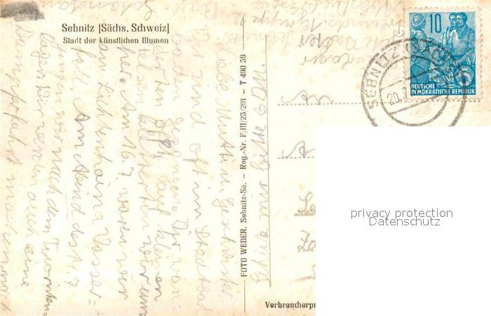 72634500 alte Postkarte Sebnitz Kirche Panorama postalisch gelaufen Erhaltung siehe scans [KathaD79] KatCode: 11110014287370