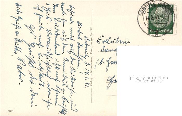 73558253 alte Postkarte Sebnitz Panorama Blick nach dem Lilienstein Stadt der Kunstblumen postalisch gelaufen Erhaltung siehe scans [FriedD77] KatCode: 11110014287370