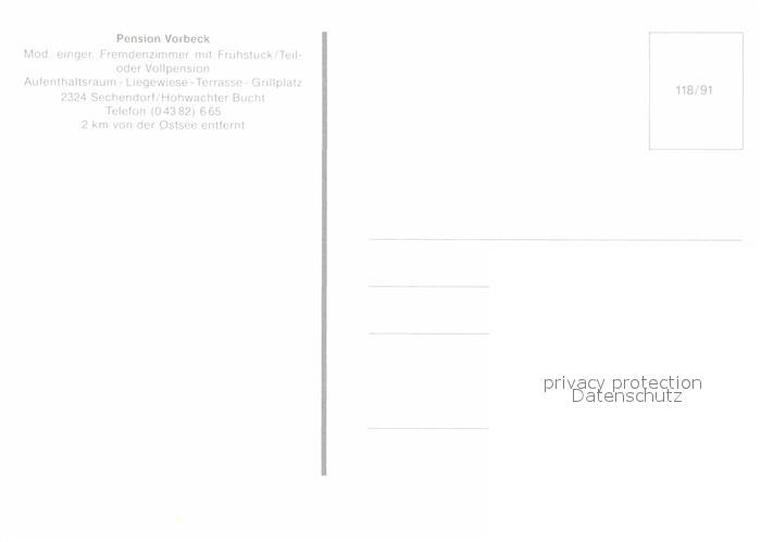 72675013 Sechendorf Pension Vorbeck postalisch nicht gelaufen Erhaltung siehe scans [WerneD78] KatCode: 11110001057007