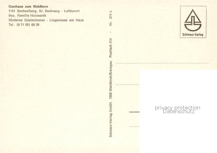 73866732 Sechselberg Gasthaus zum Waldhorn postalisch nicht gelaufen Erhaltung siehe scans [WerneD78] KatCode: 11110008119004
