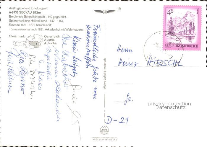 72235320 alte Postkarte Seckau Benediktinerstift 12. Jhdt. Fliegeraufnahme postalisch gelaufen Erhaltung siehe scans KatCode: 11390226060913