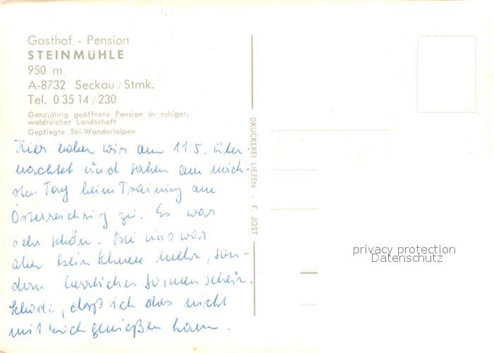 12973082 Seckau Gasthof Steinmuehle postalisch nicht gelaufen Erhaltung siehe scans [NatalD47] KatCode: 11390226060913