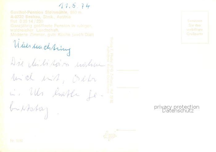 12973083 Seckau Gasthof Steinmuehle postalisch nicht gelaufen Erhaltung siehe scans [NatalD47] KatCode: 11390226060913