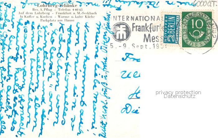 73706181 alte Postkarte Seckbach Frankfurt Main Lohrberg-Schaenke Ausblicksort postalisch gelaufen Erhaltung siehe scans [LiesaD40] KatCode: 11110006412000