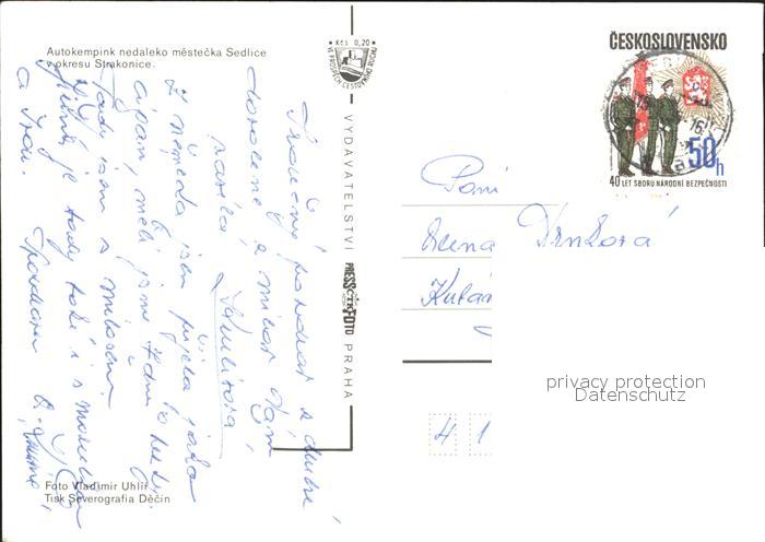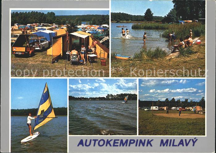 old postcard Sedlice Breznice Okres Pibram Autokempink Milavy Windsurfen postalisch gelaufen Erhaltung siehe scans