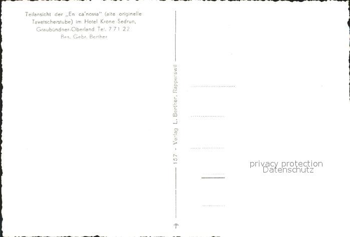 11647765 Sedrun Alte originelle Tavetscherstube im Hotel Krone postalisch nicht gelaufen Erhaltung siehe scans KatCode: 11470100355538