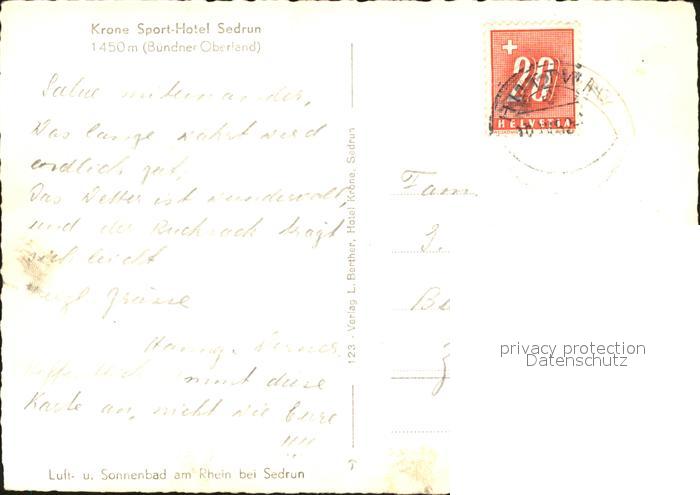 11647771 alte Postkarte Sedrun Blick ueber das Tal Alpenpanorama Buendner Oberland postalisch gelaufen KatCode: 11470100355538