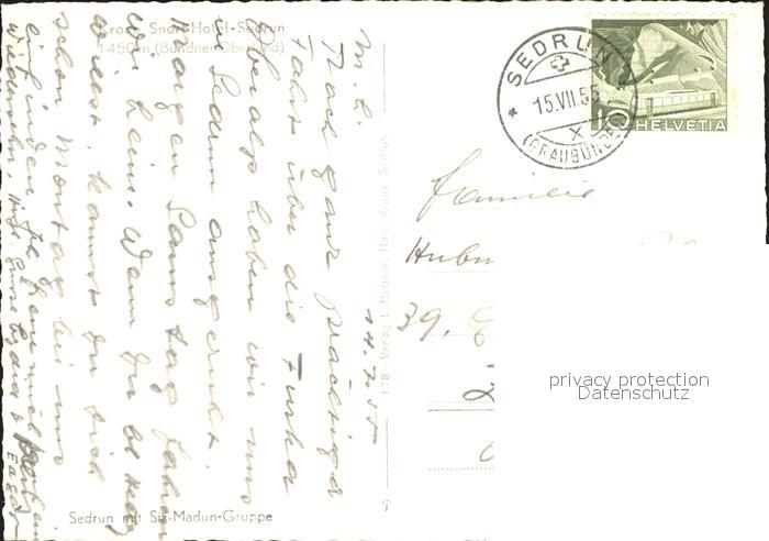 11647764 alte Postkarte Sedrun Gesamtansicht mit Alpenpanorama Zug postalisch gelaufen Erhaltung siehe scans KatCode: 11470100355538