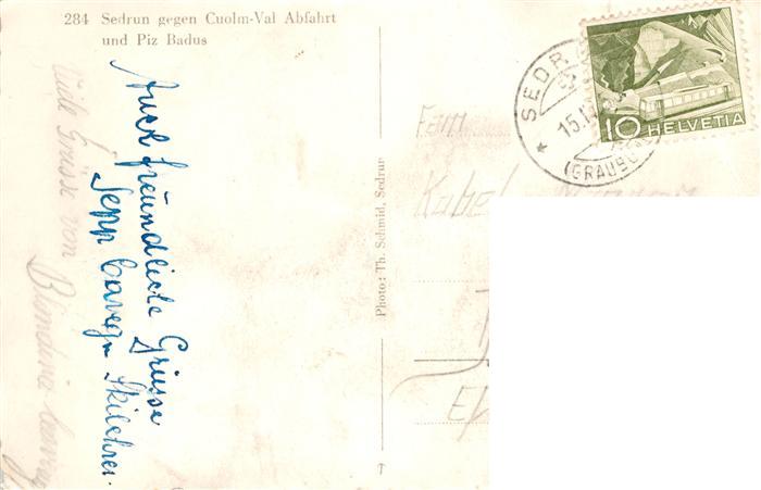 13915892 alte Postkarte Sedrun mit Cuolm Val Abfahrt und Piz Badus postalisch gelaufen Erhaltung siehe scans [FriedD77] KatCode: 11470100355538