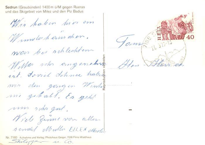 13921165 Sedrun mit Rueras und Skigebiet von Milez Piz Badus und Eisenbahn postalisch nicht gelaufen Erhaltung siehe scans [FriedD77] KatCode: 11470100355538