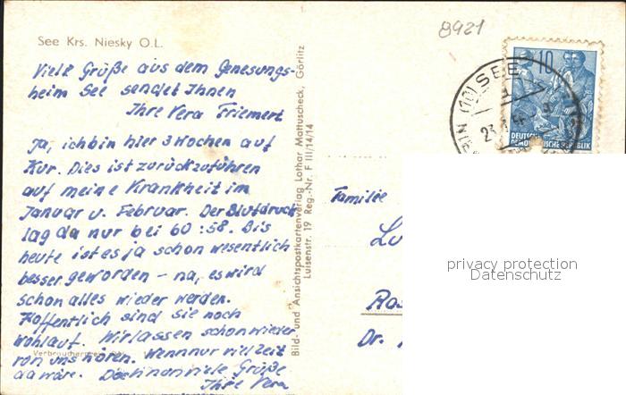 72097154 alte Postkarte See Niesky Teilansicht postalisch gelaufen Erhaltung siehe scans KatCode: 11110014284280