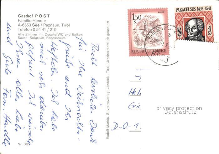 72438972 alte Postkarte See Tirol Gasthof Post postalisch gelaufen Erhaltung siehe scans KatCode: 11390334070623