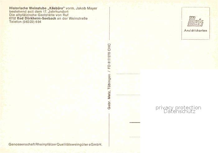 72777719 Seebach Bad Duerkheim Historische Weinstube Kaesbuero postalisch nicht gelaufen Erhaltung siehe scans [LiesaD40] KatCode: 11110007332002